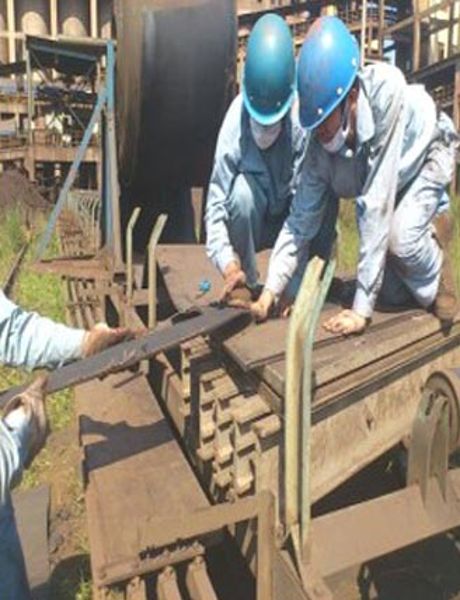 行車軌道鋁熱焊焊接技術:常規碳鋼焊接軌道接頭,在行車運行頻繁區域或大噸位行車運行區域極易斷裂,焊接頻繁,導致行車行走輪、水平輪調整更換次數多,人員投入較大,勞動強度高,且存在高空臨邊作業的安全隱患等因素。分公司引進吸收鐵路路軌焊接技術,并先后實施焊接接頭改造約700個,實踐檢驗后效果良好。