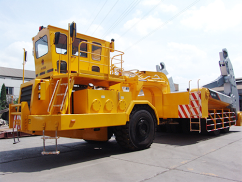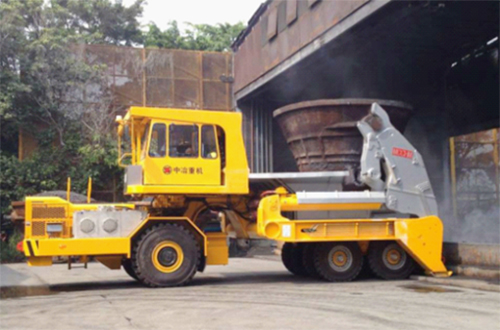 用于熱態(tài)爐渣無軌化熱潑工藝。該產品具有裝罐、卸罐、翻罐倒渣、運輸一體化作業(yè)能力;整車前后車架鉸接,實現折腰轉向,具有轉彎半徑小的特點;整車為前橋驅動,后部承載的拖動設計結構,整車結構承載能力強;駕駛室布置在前車架中間高位,視野寬敞;駕駛轉向隨動,轉彎操縱感覺性強;駕駛位具備前后雙向駕駛,且駕駛室遠離渣罐。