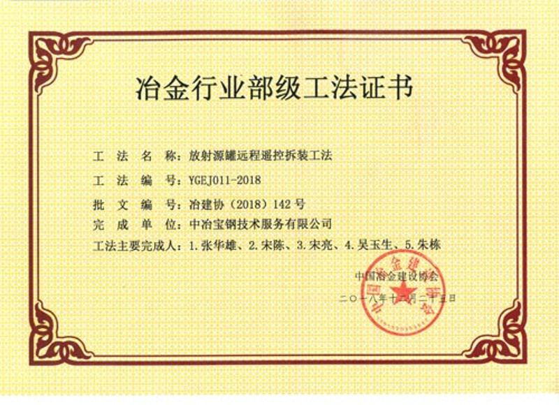 2018年省部級(jí)工法證書